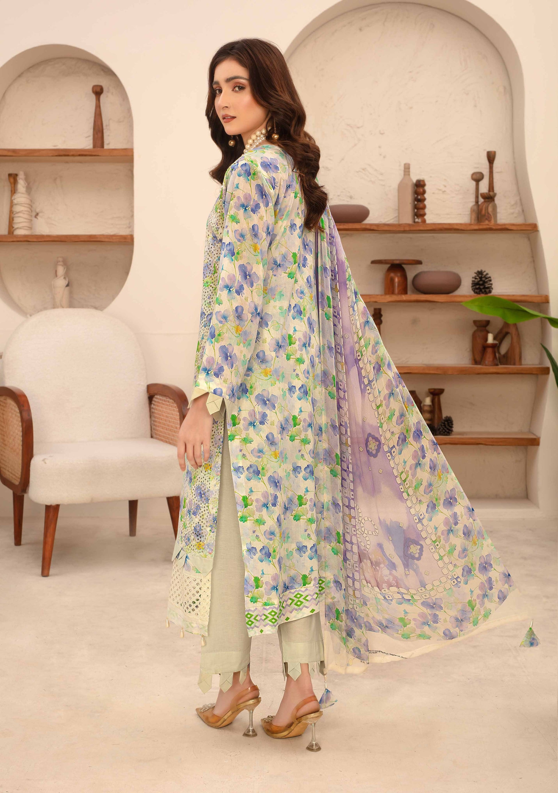 This unstitched 3-piece ensemble evokes nostalgia with rainbow-inspired motifs and iridescent hues that dance across the fabric — a celebration of art, culture, and expressive fashion at an accessible price.