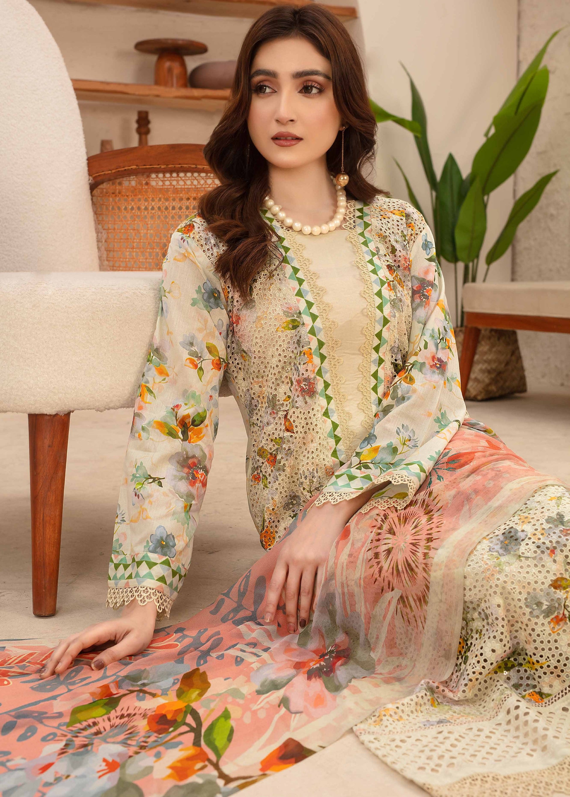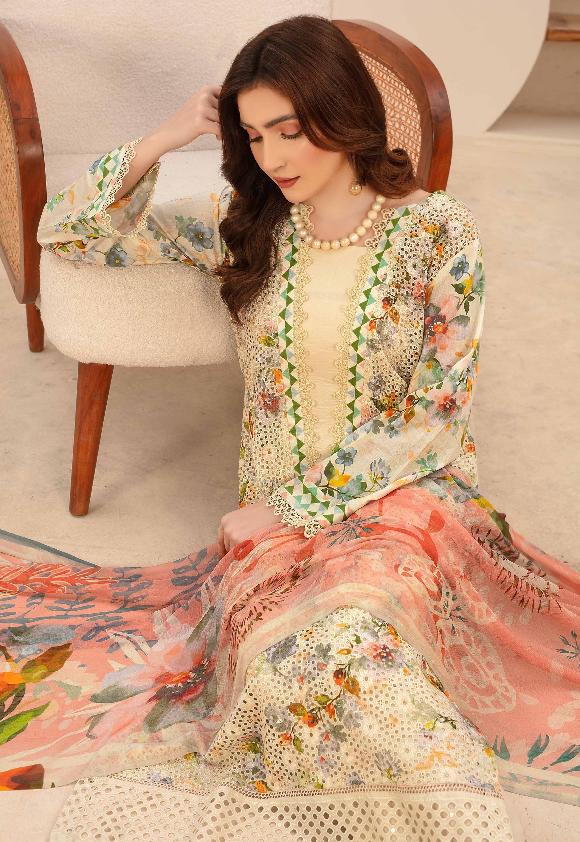 This unstitched 3-piece ensemble evokes nostalgia with rainbow-inspired motifs and iridescent hues that dance across the fabric — a celebration of art, culture, and expressive fashion at an accessible price.