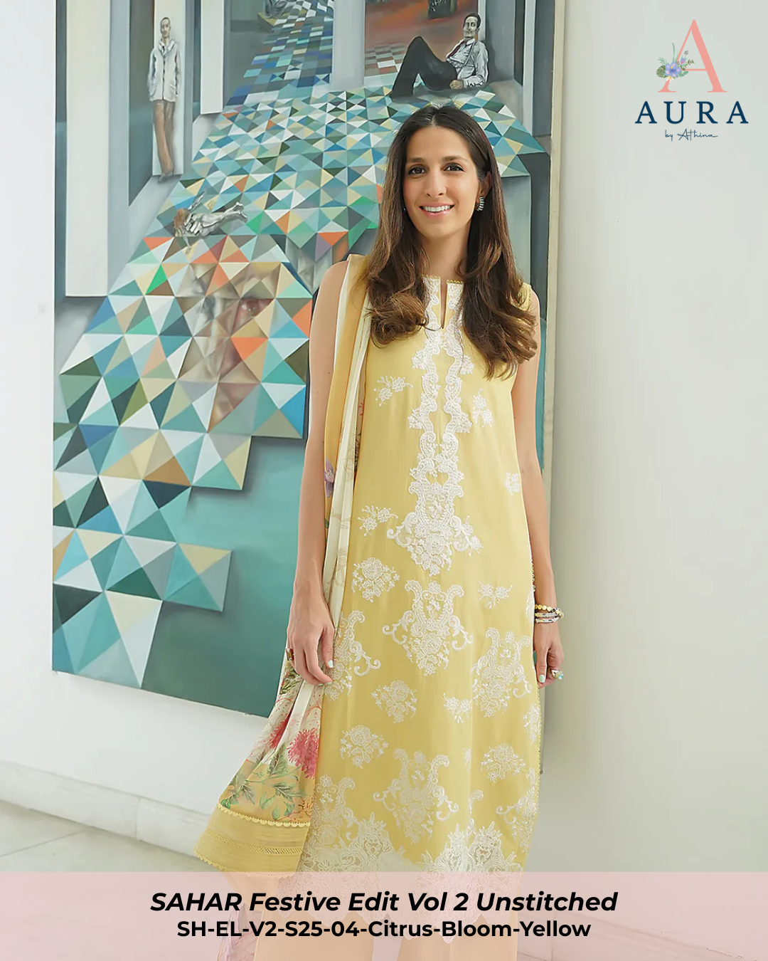 #AuraByAthina #SAHARatAura #CitrusBloom #FestiveEditVol2 #UnstitchedPret #PakistaniFashion #LawnEdit #YellowElegance #NewArrival #FestiveReady