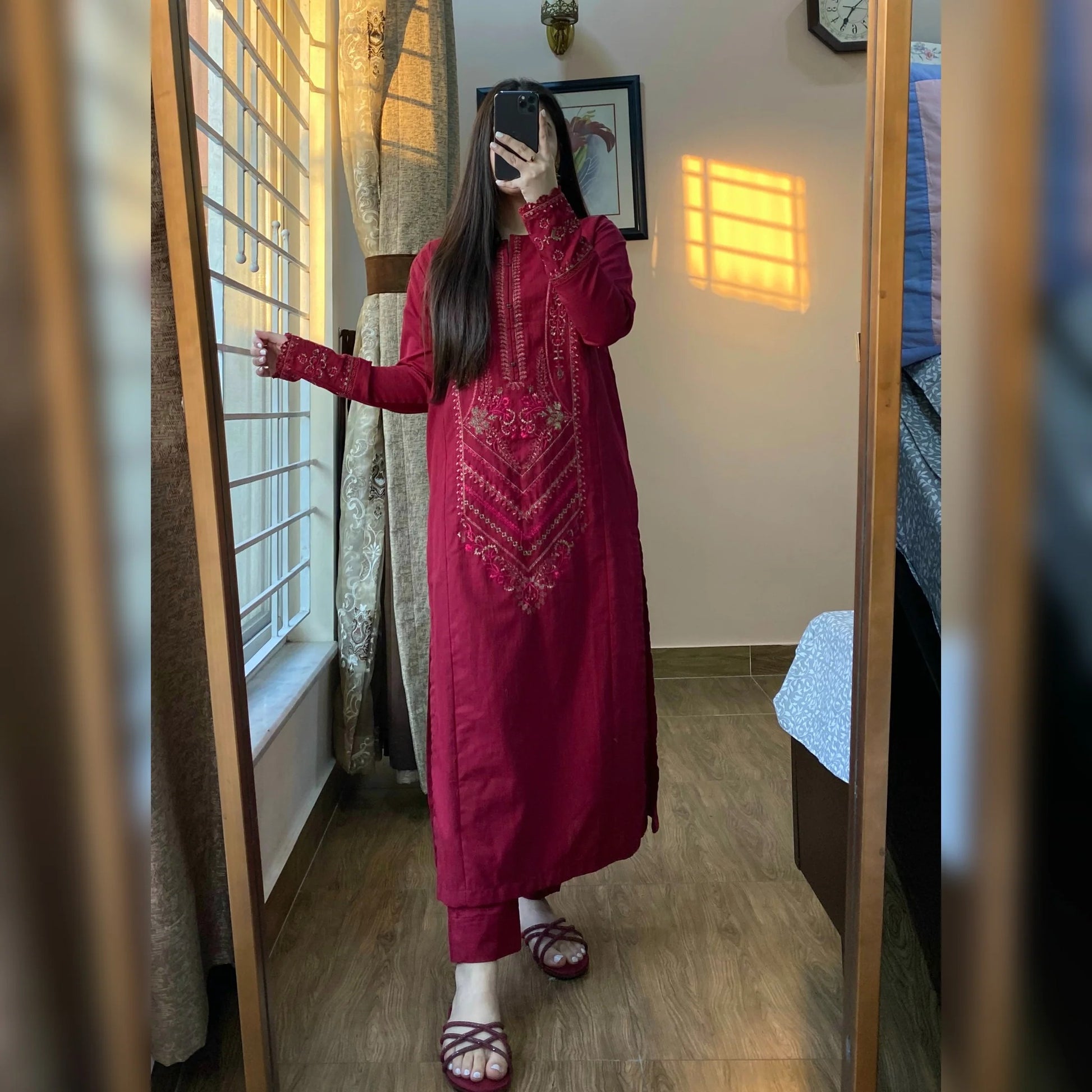 2 Piece Stitched Set | Embroidered Shirt & Trouser | Fabric: Khaddar |