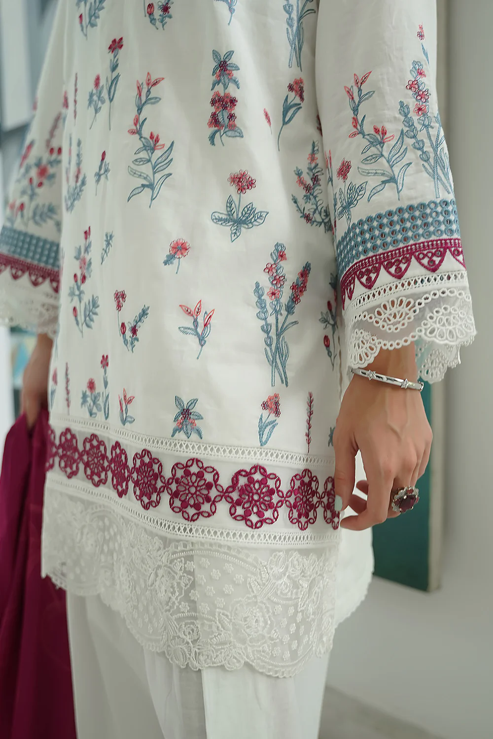 Soft, serene, and effortlessly elegant — Dream Plum pairs an off-white lawn base with subtle embroidery and a beautifully printed silk dupatta. Enhanced with an embroidered organza border, this unstitched 3-piece set brings gentle sophistication to your festive wardrobe while keeping things light, airy, and refined.