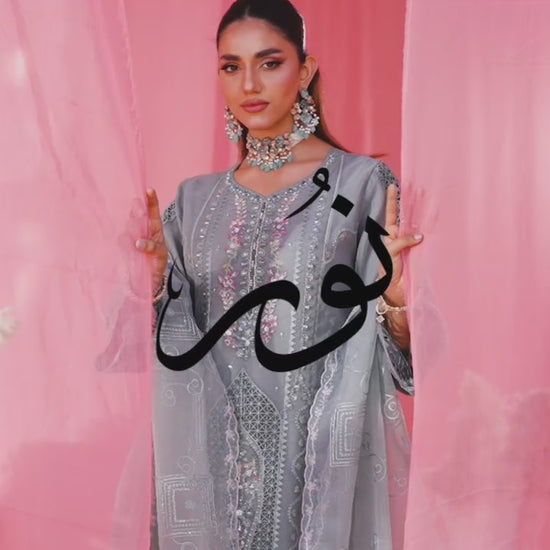 Softly spoken and poetically styled — Ghazal captures the quiet power of refined elegance. This timeless ensemble is crafted from embroidered organza, adorned with intricate cutwork, delicate appliqué, hand embellishments, and graceful lacework. A comfortable viscose inner ensures every detail feels as good as it looks.