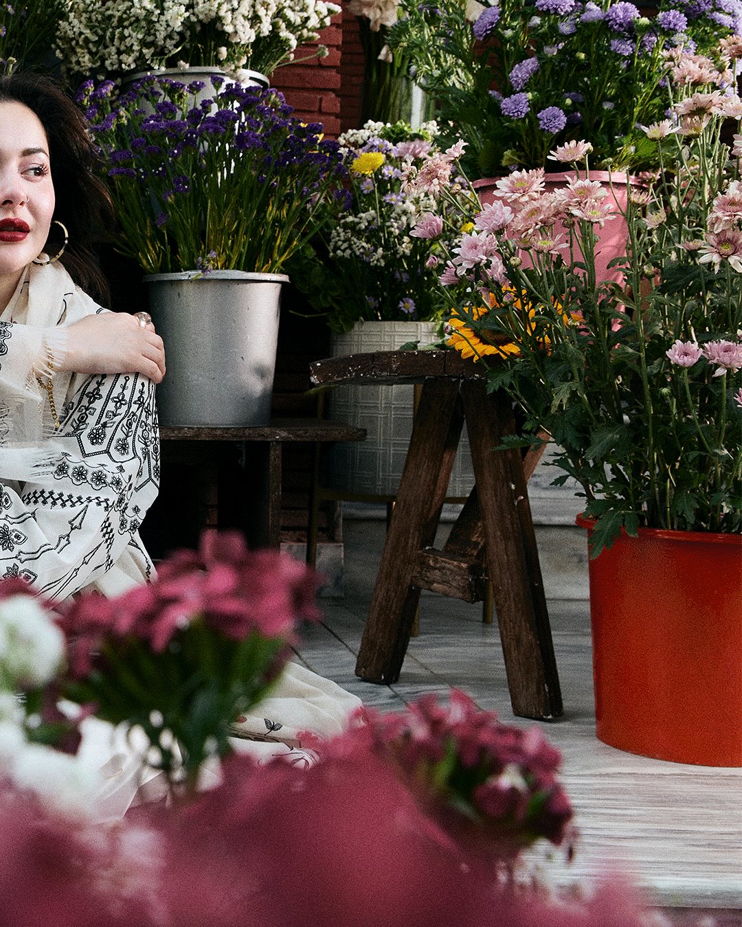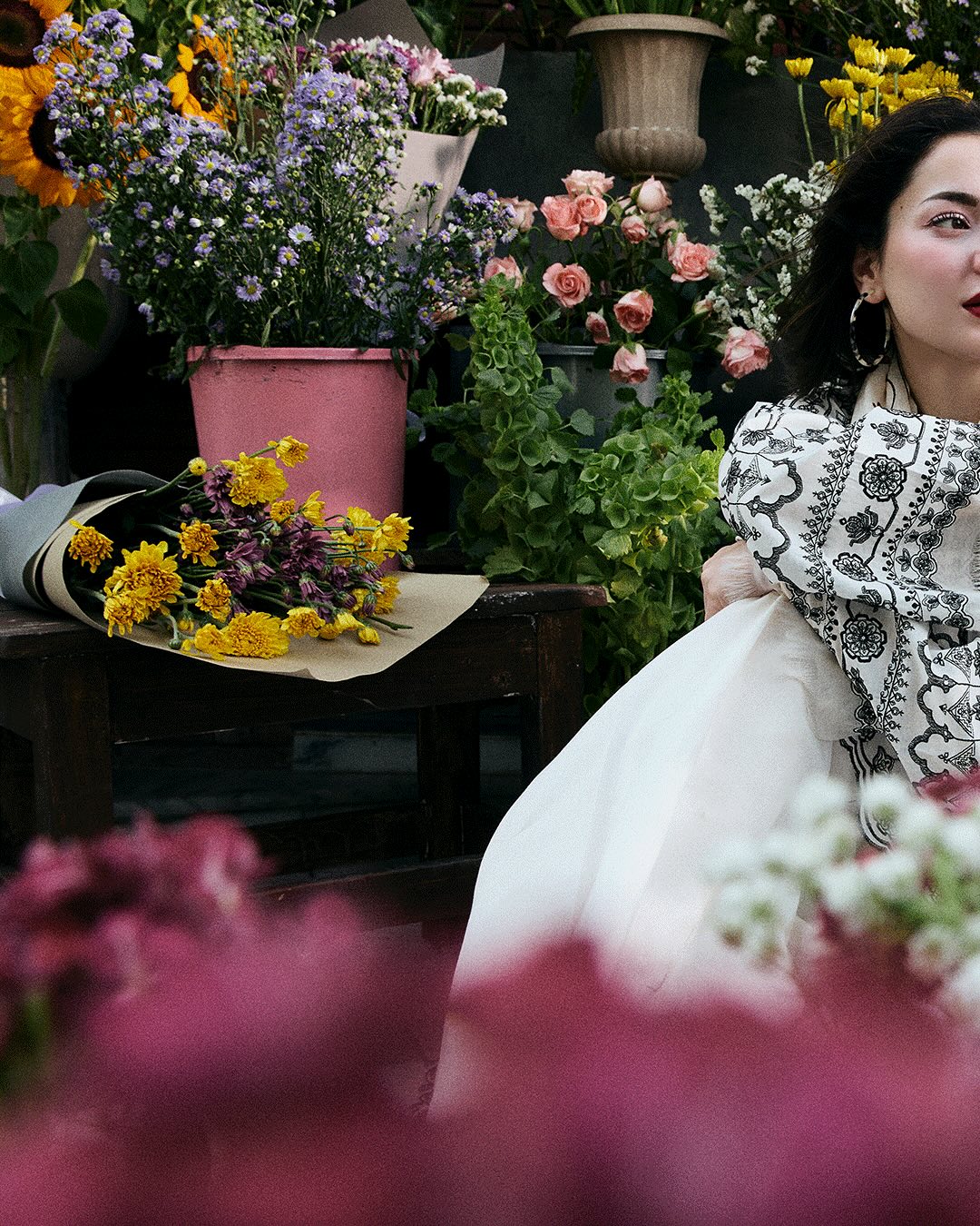 A crisp white lawn piece lifted with bold, playful embroidery in vibrant tones, finished with a cotton silk dupatta that adds a smooth, graceful layer to the look.