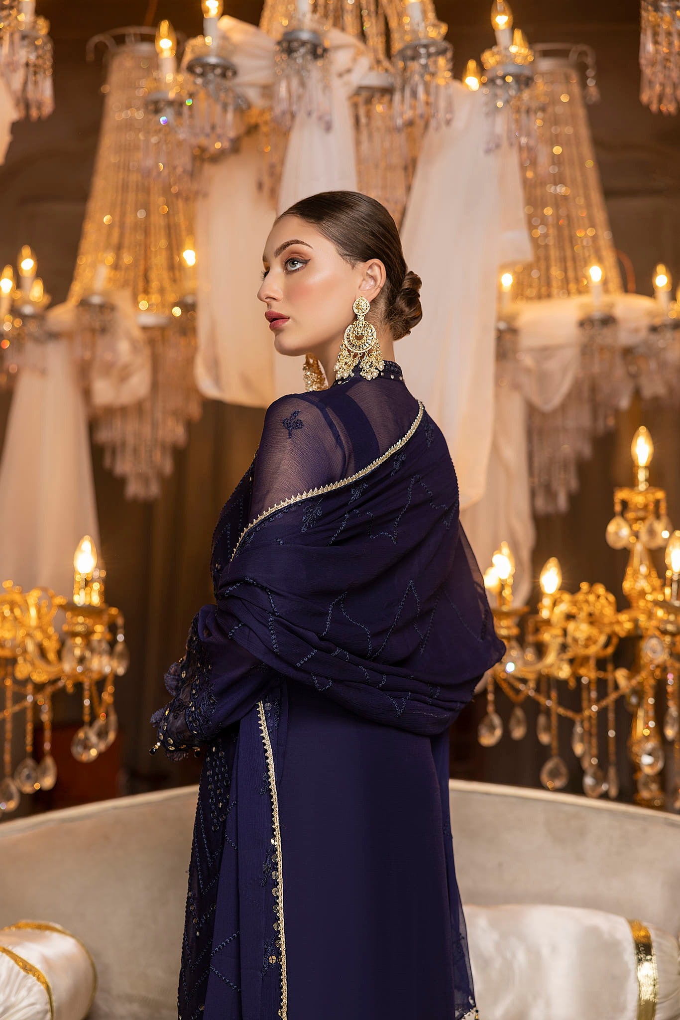 Paired with a matching embroidered chiffon dupatta and silk trousers, it’s a timeless addition to your wardrobe.